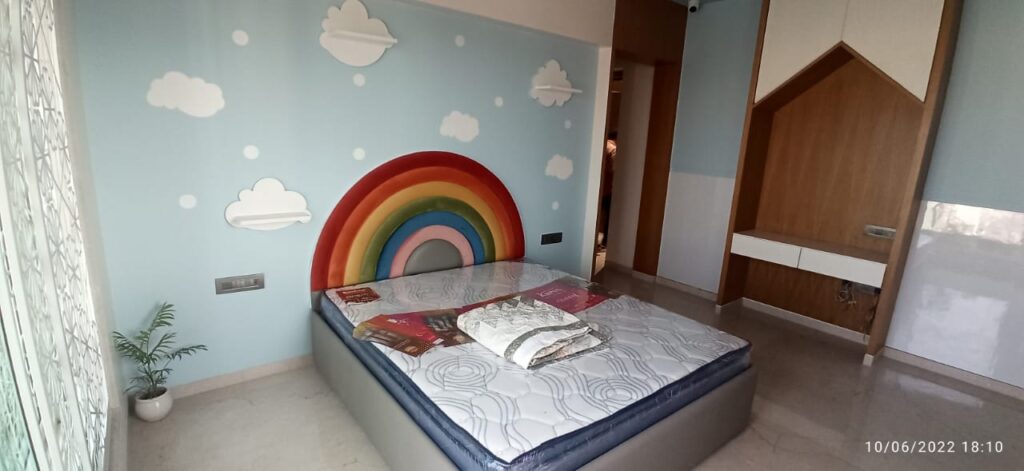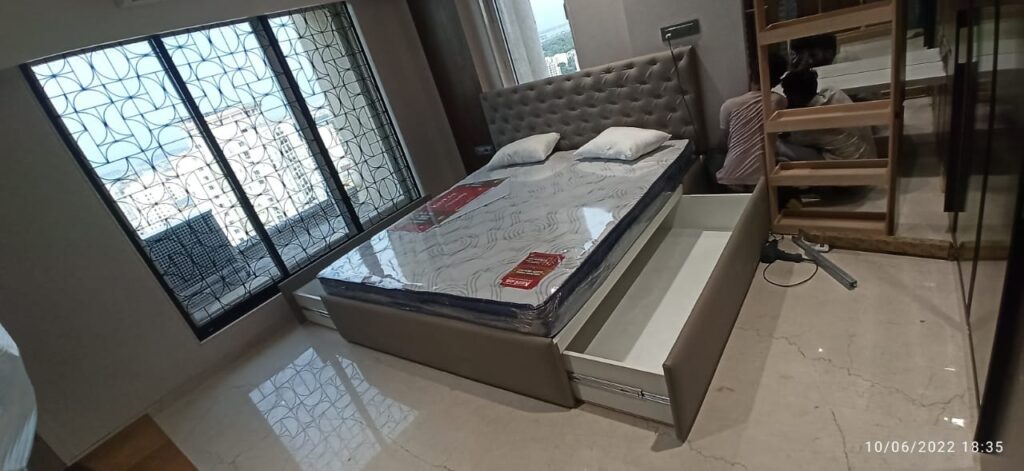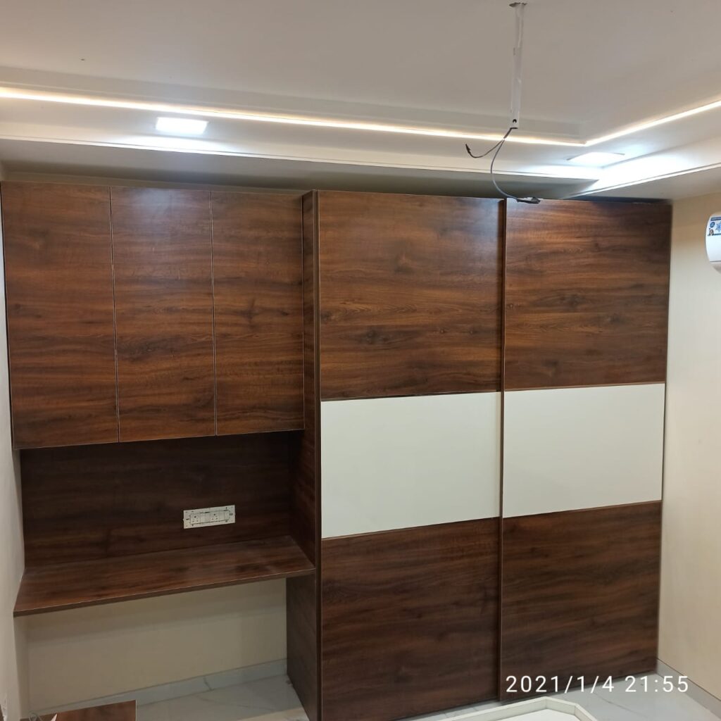 A fully customized Master Bedroom solution designed for a modern 2BHK apartment in Kalyan. We created a matching King-size bed and 7-foot wardrobe, both finished in Deep Walnut Brown to bring warmth and elegance to the space.